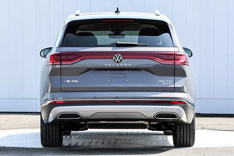 新车的尾部设计比较沉稳,中间采用贯穿式尾灯,与大众全新样式的车标融合在了一起。车标下方则是“TALAGON”的英文拼写,最下方是实体的双边单出排气。整体来看,与其说Talagon的外形像途昂,倒不如说它长得与上汽大众的MPV威然更为相似,整车流线型的设计也比途昂看起来要更加和谐。