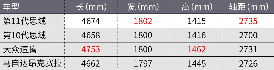 尺寸方面,全新一代思域相比在售的10代车型加长了35mm轴距,车长也小幅度增加到了4674mm。虽然车长相比大众速腾依然没什么优势,但是轴距已经是合资紧凑型轿车里最大的一个了。