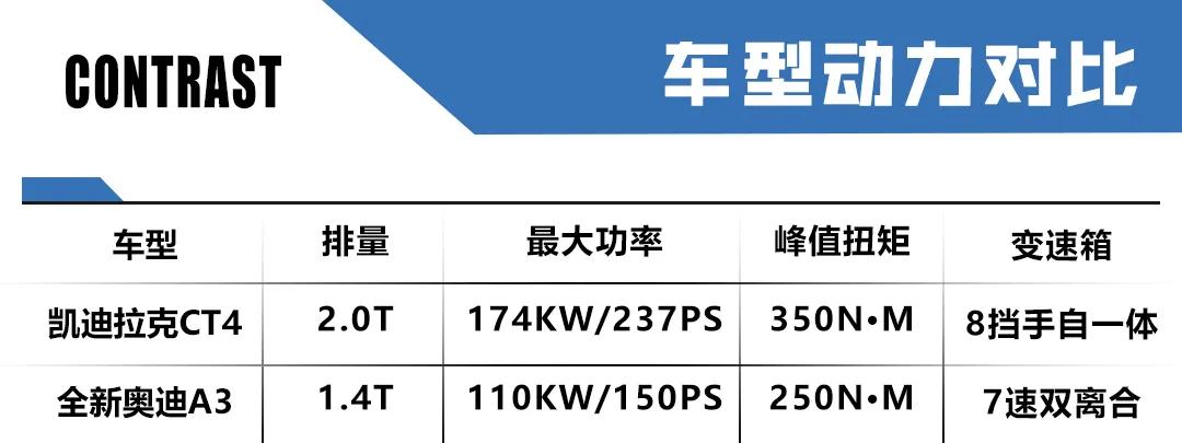 从上述对比来看,凯迪拉克CT4的优势在于车身尺寸、动力系统等方面,而全新奥迪A3家族营造科技感的实力确实强,同时提供了两厢版和三厢版,以及多款实用配置的选装,满足更多追求个性的消费者。总体而言,两款车型都符合各自的售价定位,感兴趣的朋友因需选购即可。