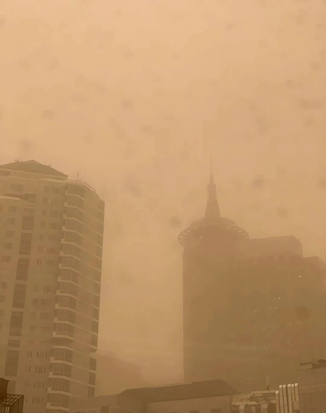 已经很多年没见过这么黄这么暴力的天气了,空气中弥漫着尘土的味道,呛嗓子。