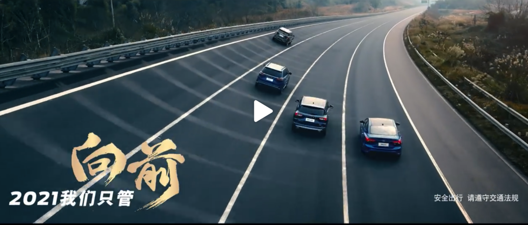 在长安福特的微博置顶上,是张译给长安福特拍摄的一条「2021,一路向前,注定精彩」的广告片。片尾,张译说,「2021,我们只管向前」。
