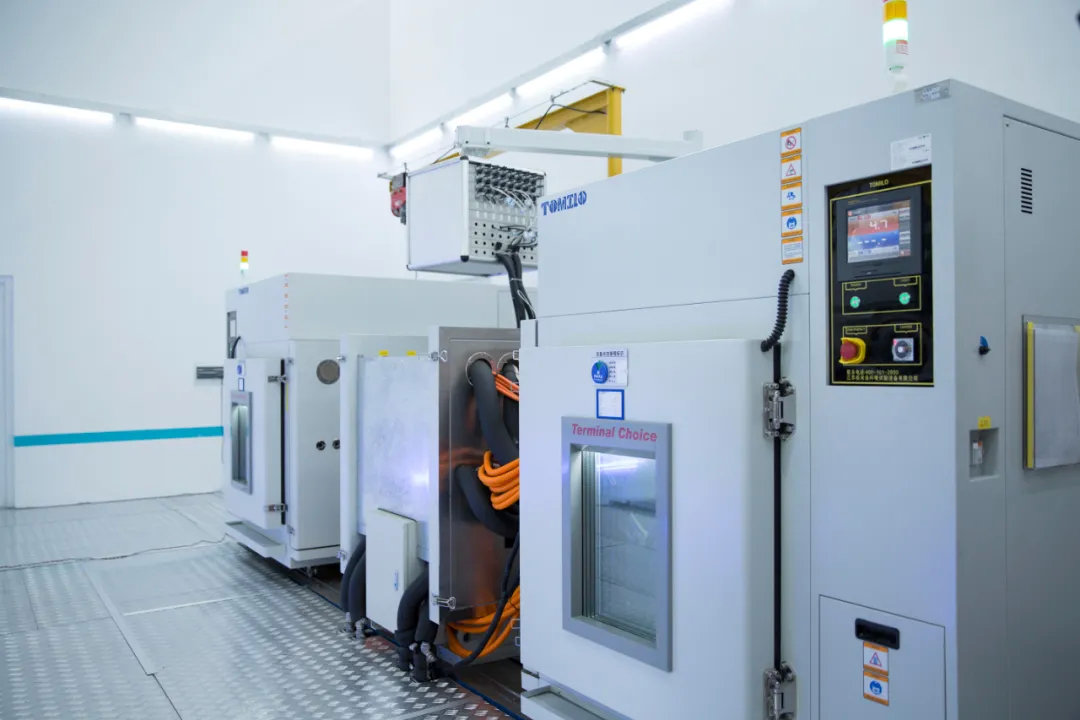 整个实验室包括了多个测试项目,例如上图的电机耐久性试验台架,就是将车辆的驱动电机24小时满负荷运行,并且在运行过程中不断切换电机运转的环境温度和湿度,验证大功率、高转速驱动下,电机的可靠性。