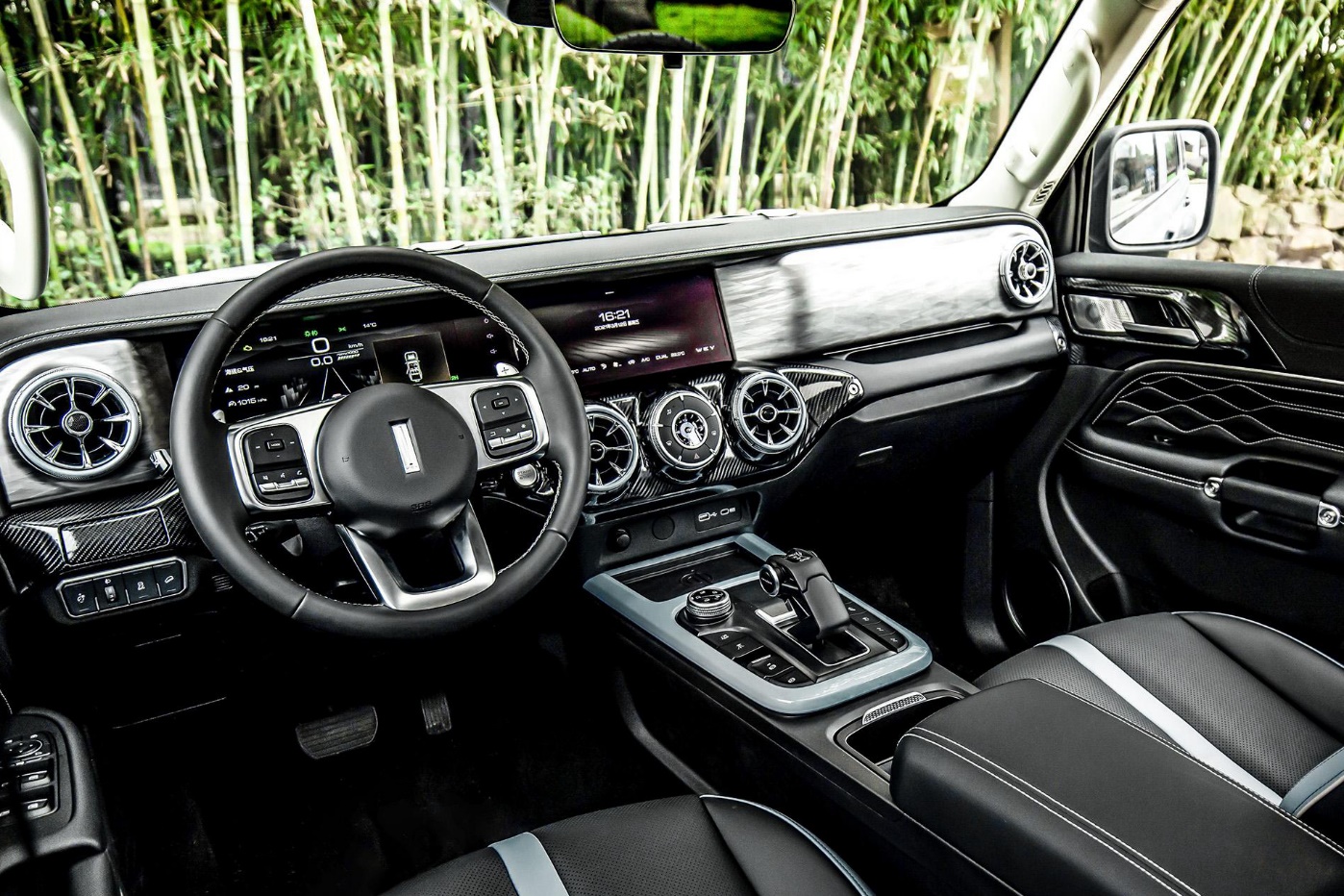 前排座椅造型比较普通,限定版车型采用了真皮双配色设计,并具备主副驾驶座椅电动调节、加热、通风等功能。后排座椅比较宽大平坦,靠背角度与座垫长度都很合适,地板中间位置的凸起并不算高,对于一款硬派越野SUV来说,舒适性不错。