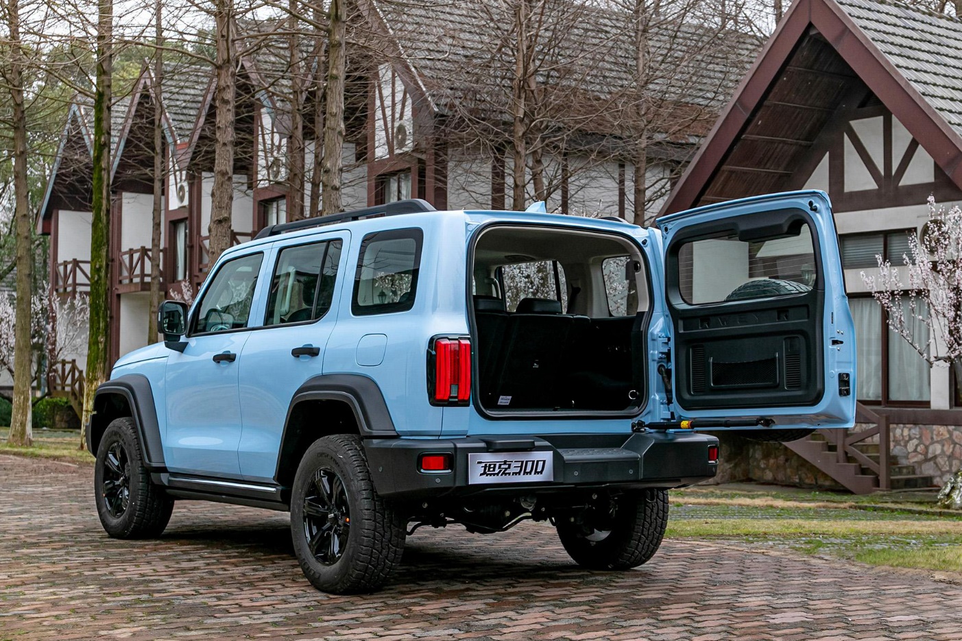 相信大家已经对坦克300这款车型外观内饰设计已经比较熟悉了,咖哥之前文章也对它有所介绍,作为限定版车型其整体外观内饰设计还是延用现款普通版车型设计风格。就细节来说,新车最大变化是采用了"柔情蓝"配色,前脸依旧使用了趋于圆角矩形的前格栅,内部则辅以圆形LED大灯组,搭配黑色磨砂质感的前保险杠以及前后轮眉,让它看上去粗犷时尚。同时前保险杠的尺寸也比较大,内部有足够的空间来放置绞盘等越野配件。(配图为:官图)