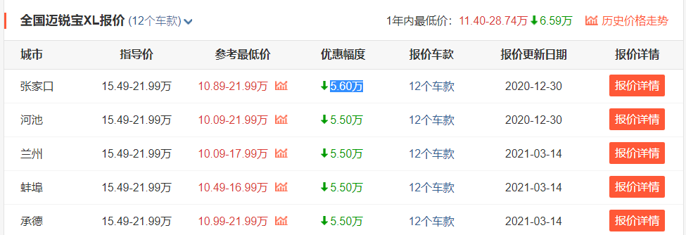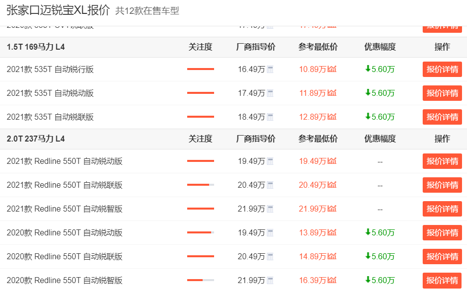 价格方面,迈锐宝XL的指导价是15.49-21.99万元,整体定价也算有自知之明。另外,目前迈锐宝XL还有很大优惠,就以河北张家口地区来说,其最高优惠幅度就来到了5.60万元。而且优惠的车型涵盖了2020款和2021款,所以总的来说迈锐宝XL这车优惠还是挺大的,对于那些想花低价就入手一台相对运动中型车的朋友们来说,它显然也值得了解一下。