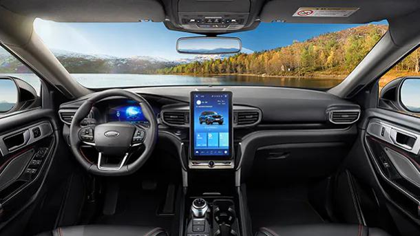 和此前的车型相比,探险者的内饰迎来了彻头彻尾的革新。12.8英寸竖直智能中控屏幕可谓十分吸引眼球。配合上12.3英寸的液晶仪表,还有中控台上大面积的皮质材料包裹,极大地满足了此类消费者的虚荣心。当然,这套中控也不是花架子,内置了SYNC