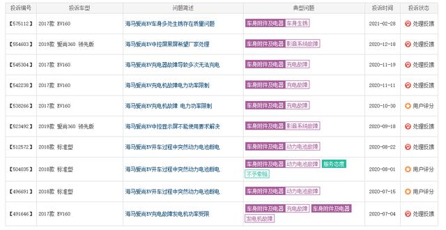 而另外一款车型爱尚EV,除了中控屏出现黑屏外,因充电机故障以及开车过程中突然出现动力电池断电被多次投诉。