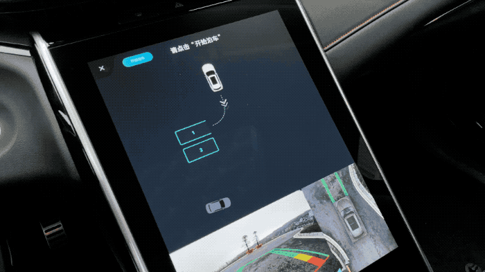 (挂入“R”挡可进入自动泊车界面;另外,通过中控大屏右上方的 “360”图标亦可进入。)