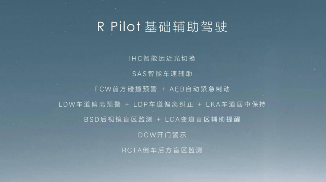 此外R PILOT拥有的很多功能和技术却是特斯拉Autopilot至今都无法实现的,就比5G技术加持下的车路协同。除了常规的R Pilot基础辅助驾驶、高阶自动驾驶能力、智能召唤等功能外,MARVEL R还能超前预知道路环境、红绿灯变化信息,实现5G智能车速控制、5G智能路口通过辅助,在路口主动推送红绿灯信息并主动调整巡航车速。