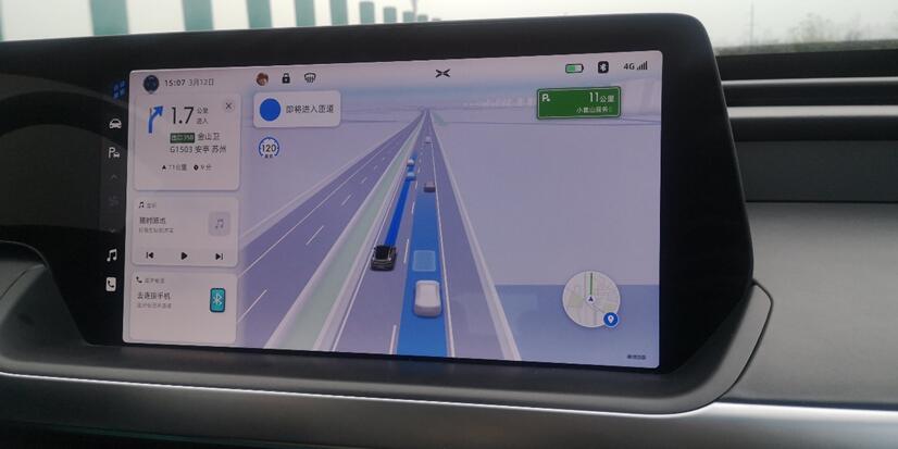 笔者在试驾过程中,我们驾驶的车型为具备XPILOT 3.0系统的小鹏P7 (配置|询价)至尊版,深度体验了小鹏汽车NGP自动导航辅助驾驶系统。首先在进入到高精地图覆盖区域后,当中控屏显示可以开启NGP时,将右侧怀挡拨杆向下拨两次即可进入NGP模式,中控大屏也随即显示高精地图。在进入到NGP功能后,诸如变道并线、进入匝道等情境下都会提前进行语音提示,给驾驶员全方位的提醒和警示。
