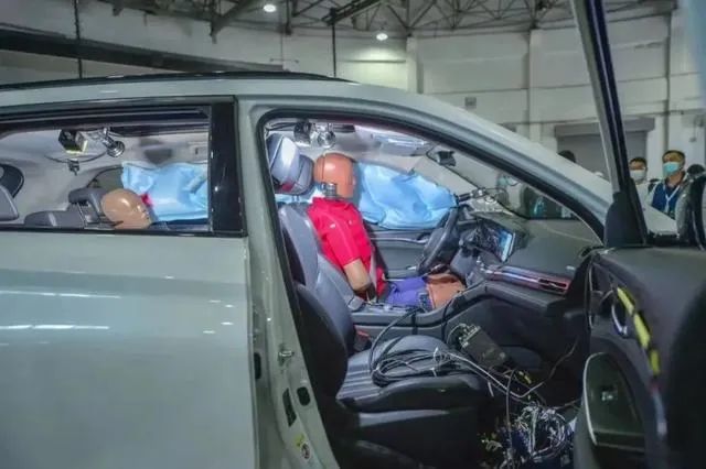 坚固的A柱和门槛是侧围支撑的基础,通过合理的刚度匹配,把侧碰撞击能量尽量通过乘员盆骨以下区域的局部变形吸收,减少乘员躯干和头部受到的冲击伤害,在乘员接触区域通过侧面气囊提供有效保护,气囊的刚度通过生物仿真度较高的碰撞假人进行标定,保证气囊内部压力不会过硬导致乘员承受过大推动力。也不会过软导致气囊被击穿导致乘员受到较大冲击。