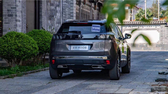 4008的侧面设计也同样值得考究,4510mm的车身长度让它显得相当紧凑,立体式腰线配合上深色车窗以及熏黑立柱,彰显出一副极具动感的悬浮式车顶造型。
