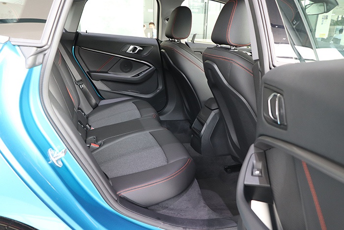 最为严峻的问题就在于后排的头部空间。宝马的设计师已经在后排头部的位置进行了掏空处理,尽可能地为后排头部预留更多的空间;但急速下溜车顶带来的负面影响依然无法避免。以我170cm的身高体验来看,坐到后排时头发已经扫到车顶;在后排“监狱”小车窗及头发扫车顶的双重影响之下,压迫感极强。