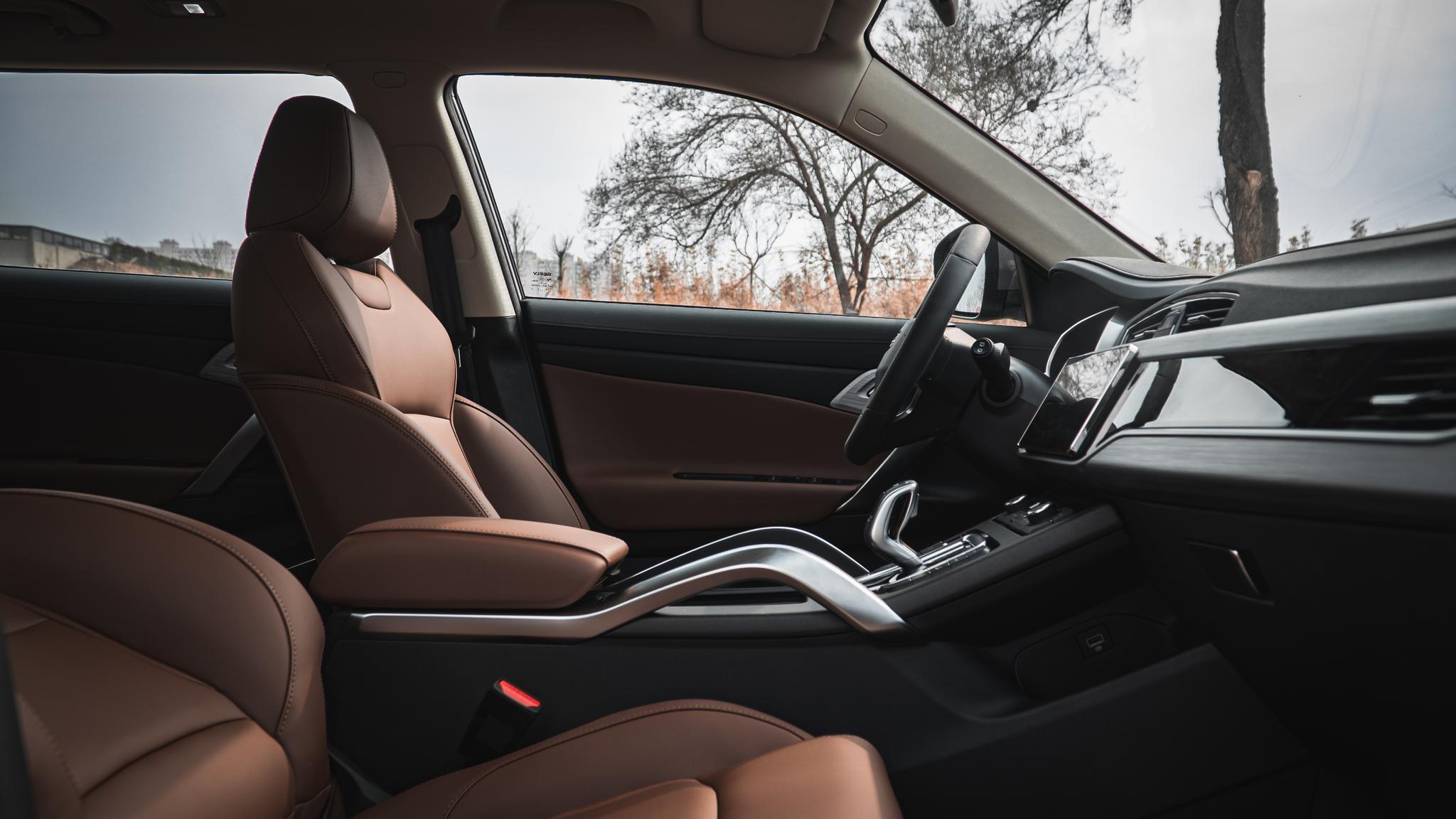 内饰上,博越亚运版采用棕色豪华内饰,搭配了全新座椅。座椅的填充物配置相对柔软,且座椅设计加长了35mm坐垫腿托,能够带来更舒适的乘坐感受,并且主驾驶支持6向电动调节。