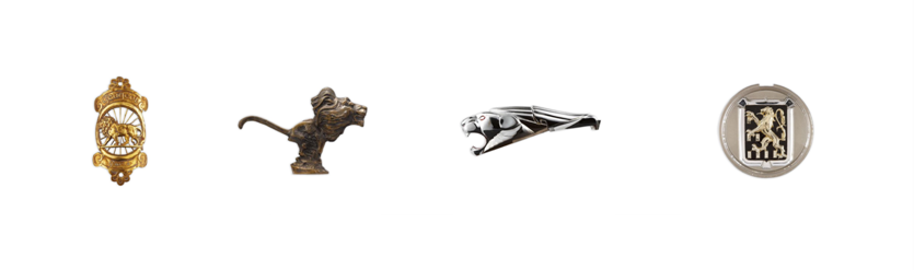 1889年,以机械为生的标致品牌很快就进入汽车领域,并有1905年的标识。在1911年到1913年间,标致汽车蓬勃发展,占据法国全国产量的半壁江山。进入20世界20年代,车头安置立标在欧洲开始流行,一直与时俱进的标致品牌于1923年和1933年也推出狮子立标。1948年,标致还推出一个描绘了站立狮子的标识。