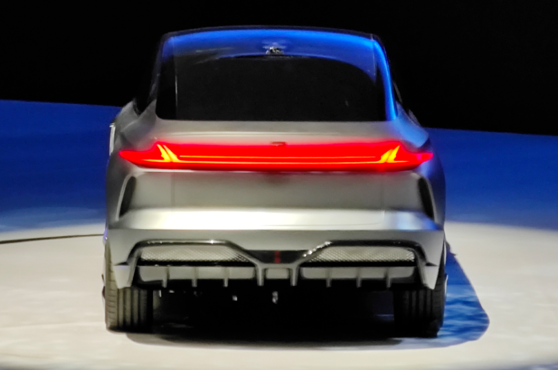 外观方面,新车整体风格呈现出激进动感的科技形态。前脸采用了封闭式的前格栅,搭配造型犀利的贯穿式LED日间行车灯,前包围两侧凸出的立体三角造型灯组展现的非常"锋利",使得新车整个前脸极具未来科技感。