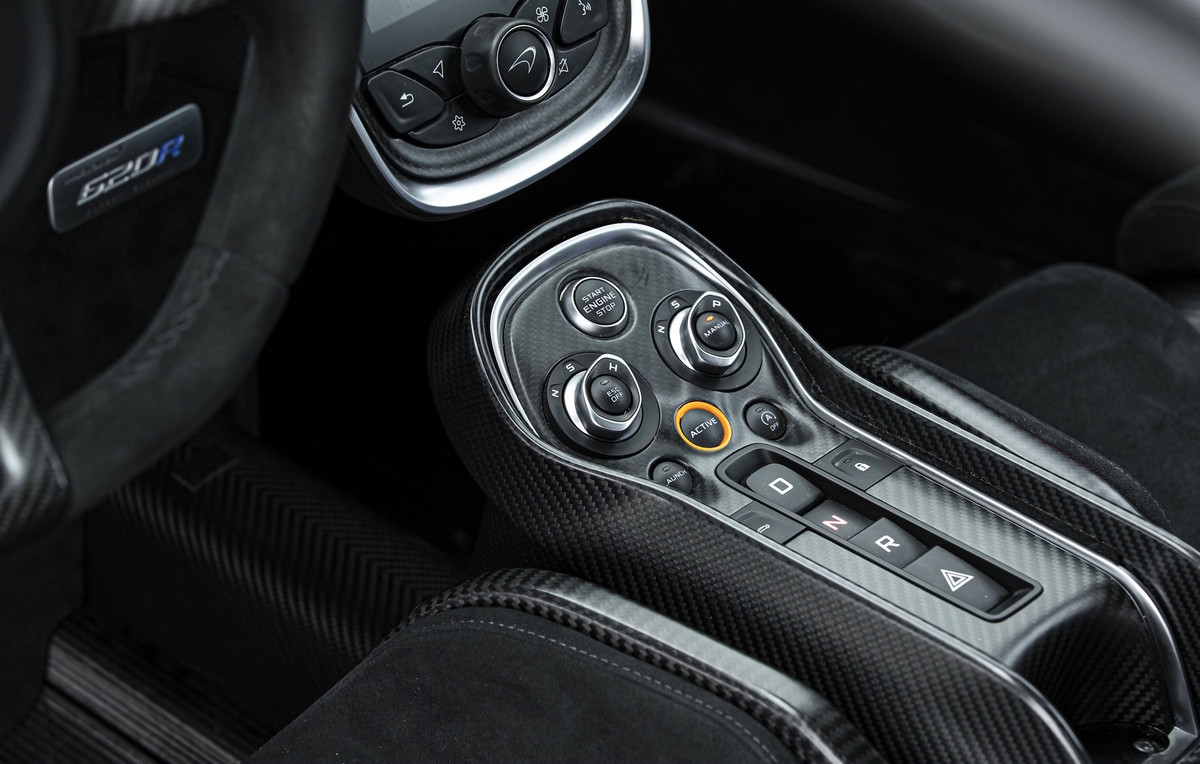 迈凯伦620R 是史上最极端的运动系列车型,620R以570S GT4为基础,共享其空气动力学设计,并拥有更宽的赛道、更低的悬挂、碳陶瓷刹车、不锈钢排气系统和中控锁轮。3.8升双涡轮增压V8发动机也与GT4赛车共享,可输出611马力(620 PS / 456千瓦)和457磅-英尺(620牛米)的扭矩,百公里加速为2.9秒,最高时速为200英里/小时(322公里/小时)。