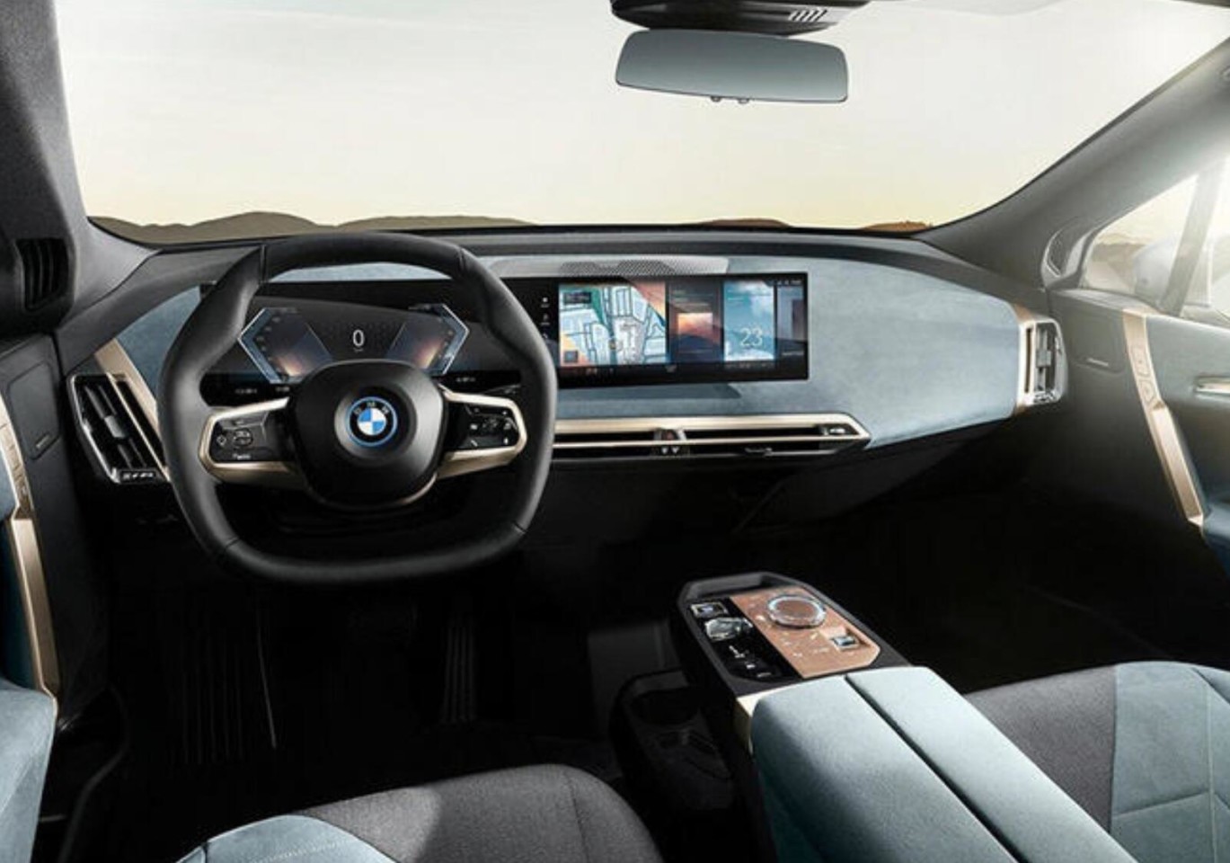 外观方面, 宝马iX (配置|询价)采用了更加夸张的外形设计语言,超大型的双肾中网以及犀利的头灯极具科技感,而夸张的前后保险杠造型让整车有着很强的视觉冲击力,尾灯组的造型也更加扁平,很好的和车头形成呼应。