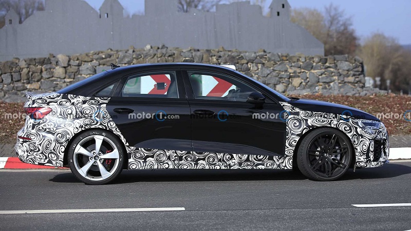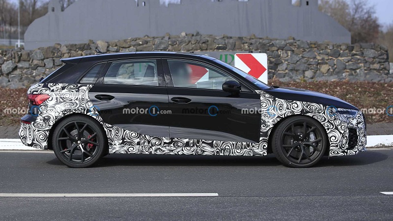 日前,有外媒曝光了全新一代奥迪RS3 Sporrtback和RS3 Sedan的路试谍照。新车基于全新奥迪A3 (配置|询价)打造而来,外观上换装了全新RS运动风格车身套件,动力方面继续搭载2.5T直列五缸发动机,以及quattro四驱系统。