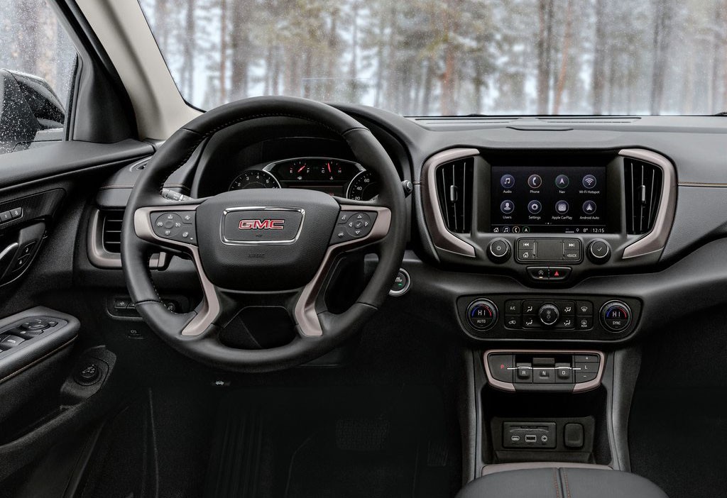 至于内饰方面,全新GMC Terrain AT4布局清晰简洁,超大尺寸的液晶显示屏,提升了几分应有的科技感,四幅式的多功能方向盘,让人有一种想要驾驶的冲动,整体内饰氛围给人感觉非常的稳重舒适。
