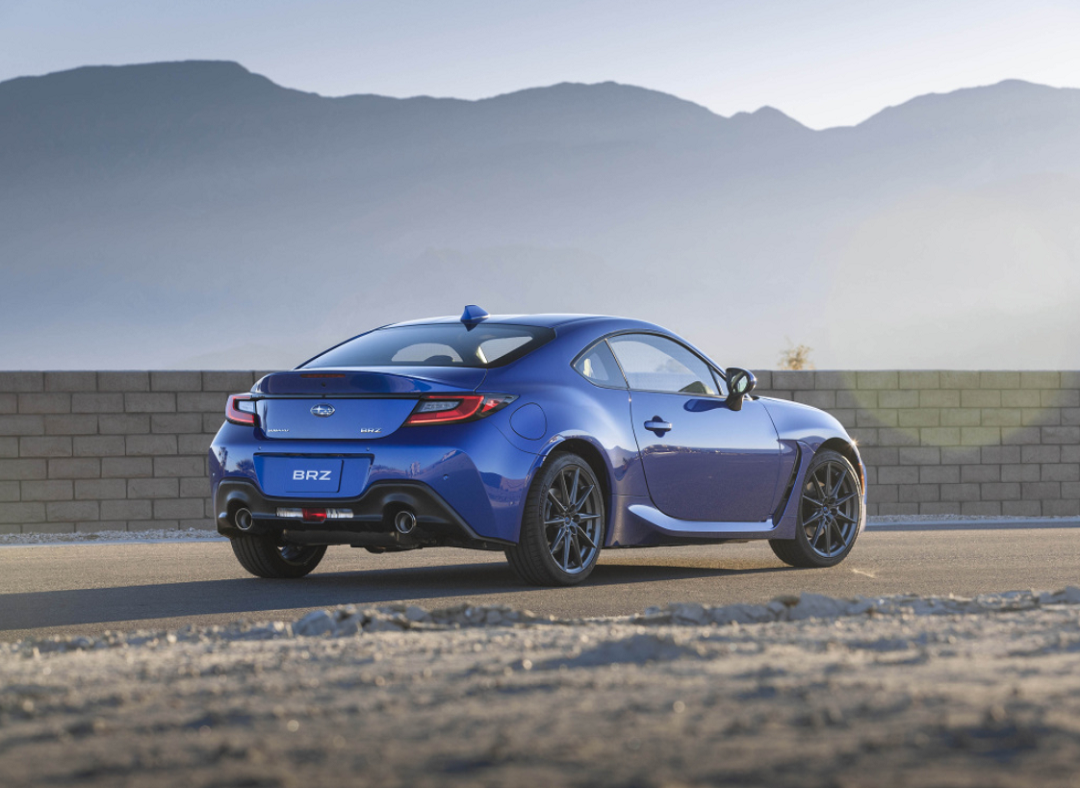 车身侧面,新车采用了经典的轿跑线条设计,并且在细节部分加装了空气动力学套件,能够为新车降低风阻,提升下压力。搭配下方多辐式轮圈,不仅造型精致,也有效增加了新车的运动属性。车尾部分,全新一代BRZ对尾灯造型进行了调整,和前大灯组形成呼应。同时,新车后备厢上方还采用了“小鸭尾”设计,给尾部带来不错的视觉冲击感。