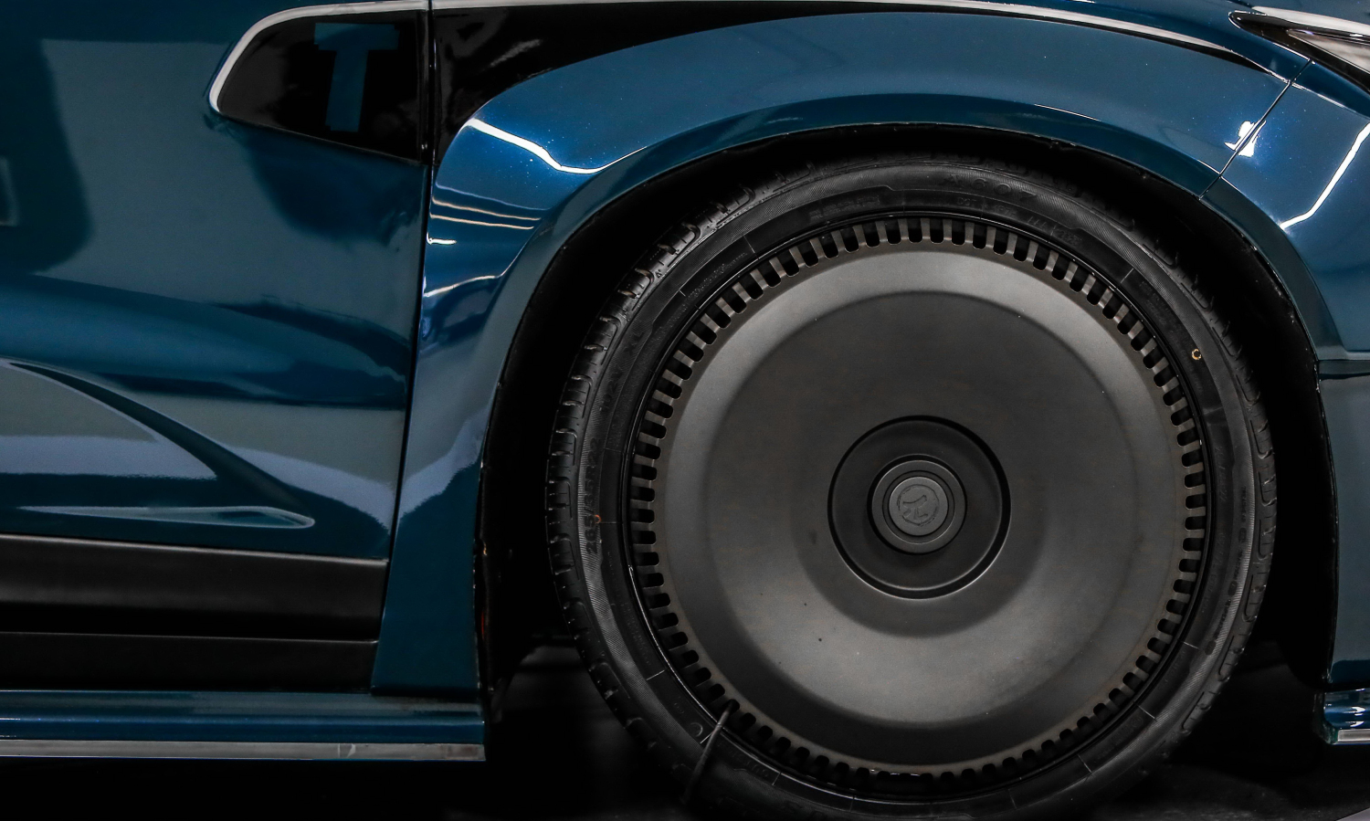 配合可以发光的朋克风光晕轮圈,整台车立即变得科幻味十足,颇有几分电影道具车的感觉。