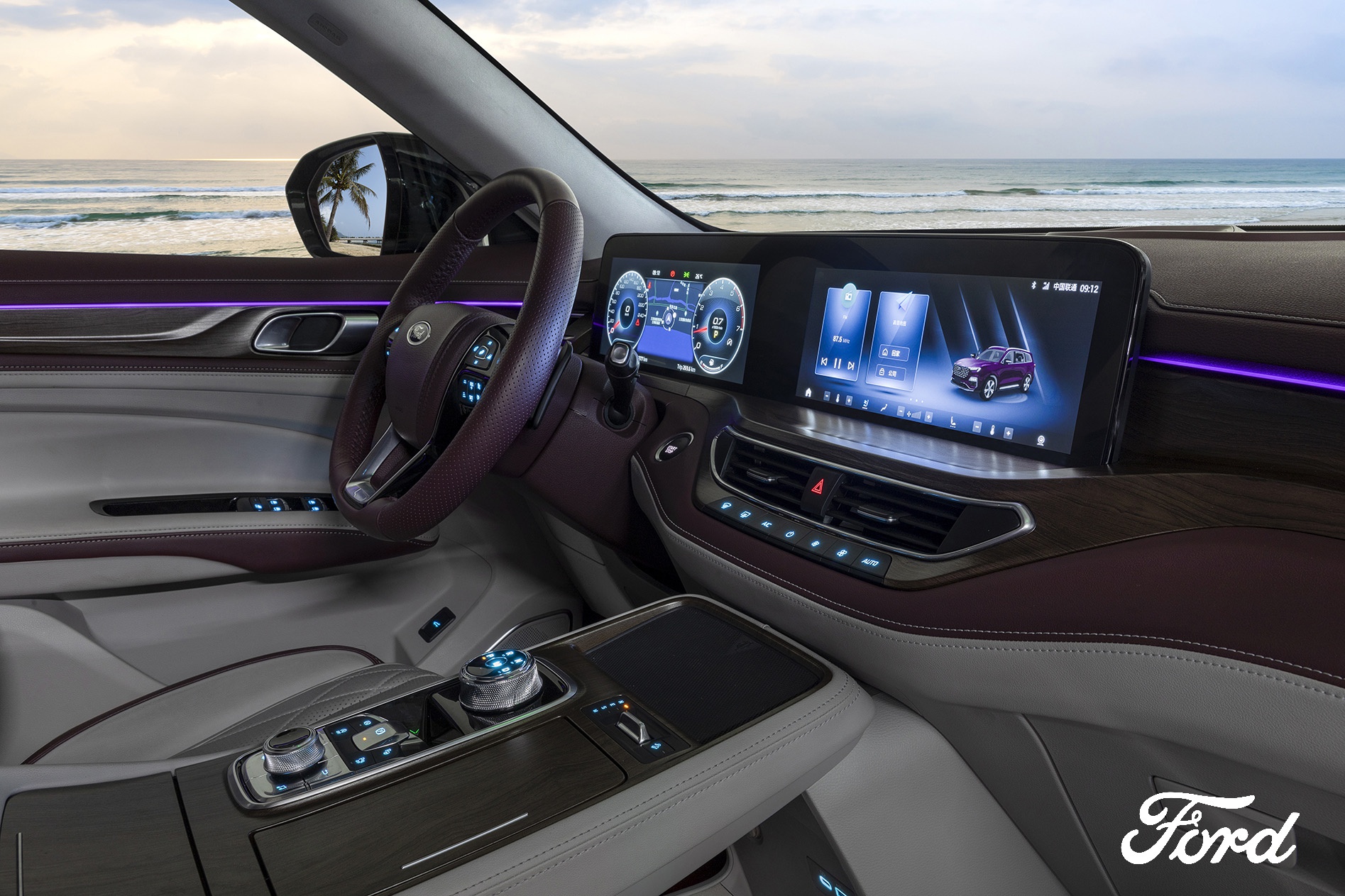 大,是第一印象。领裕将福特典型的八边形格栅面积加大、宽度加宽,糅合星空与海浪的元素,让整个前脸视觉效果更加沉稳,大气油然而生。中网错落的双色镀铬饰条高调且精致,使得前脸更具有层次感。全新设计的分体式LED灯组,三颗灯泡的组合能有效避免与大灯光线的串扰,兼具视觉效果与安全性。主打的“星云紫”配色,深邃淡然,与车型气质高度匹配。