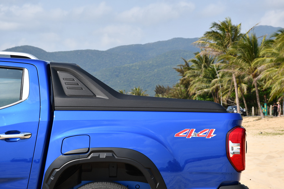 另外,宽大的黑色轮拱、货箱处的黑色整流罩以及在车顶设置的银色行李架,让车侧在视觉上显得极为和谐。