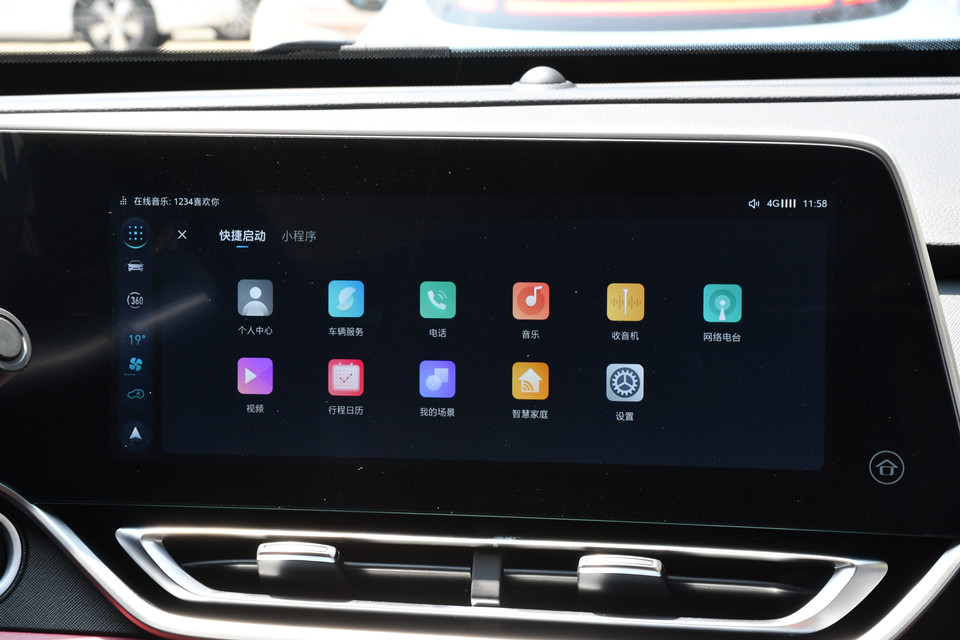 首先在设计上,中控台造型以驾驶员为中心,采用了倾向于驾驶位的非对称式设计,同时配备的10.25英寸液晶仪表与12英寸中控屏使用了当下市场上流行的双联屏设计,对于科技感的营造非常到位。