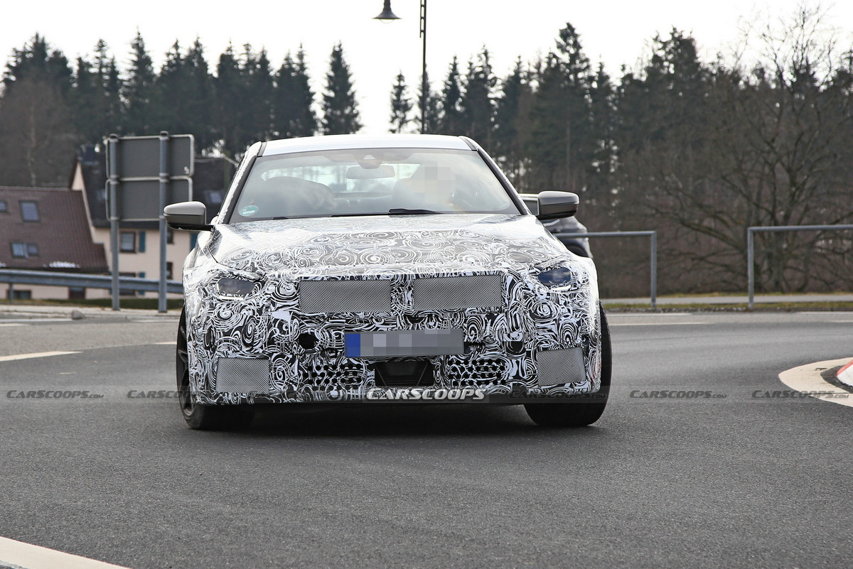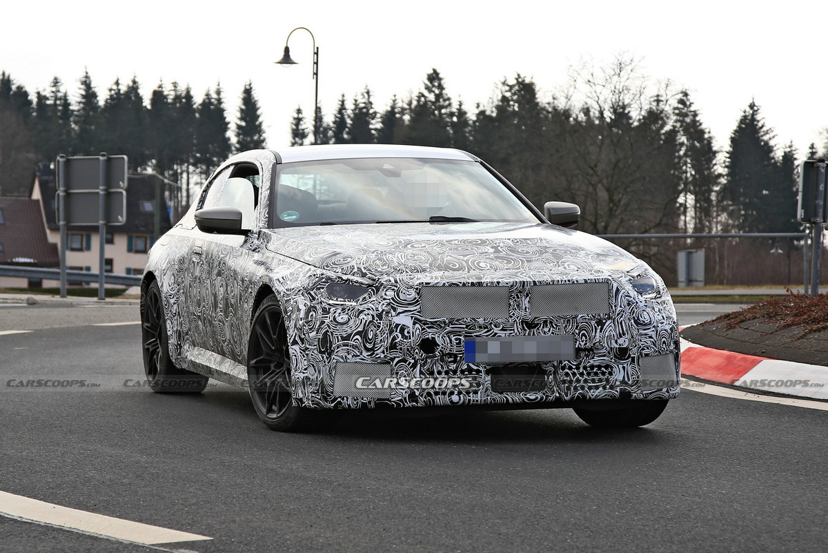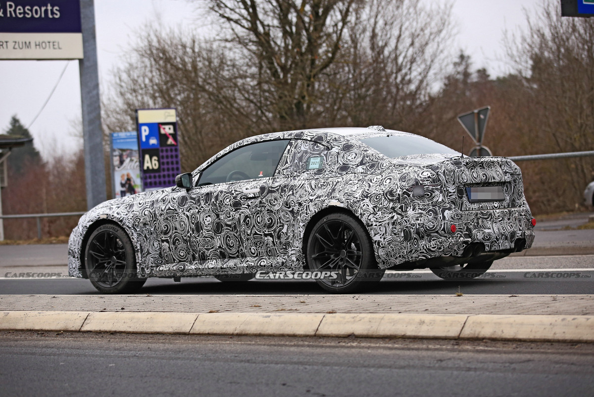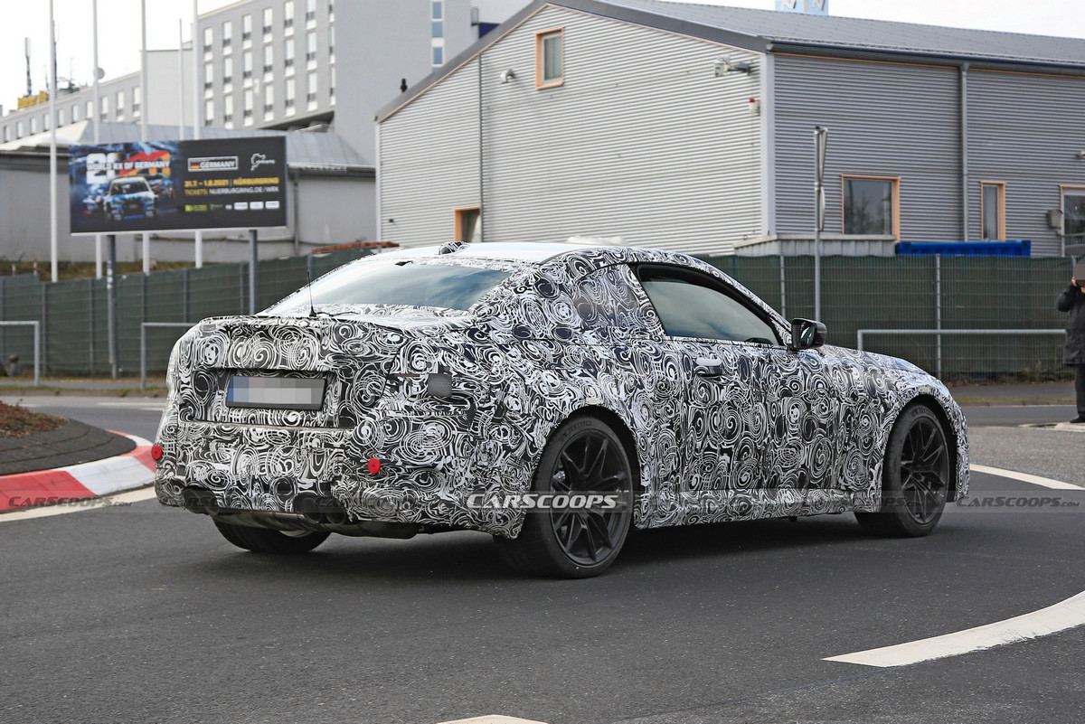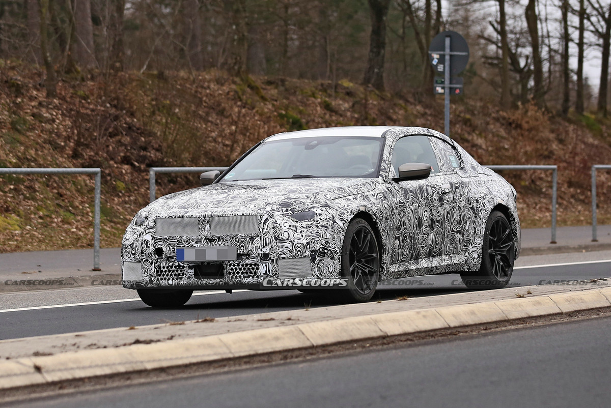 这辆车似乎穿着与我们过去所见过的迷彩服,所以除了四根尾管、肥大的后轮胎和吸引人的比例之外,并没有太多新的特点可言。之前泄露的图片显示,隐藏在迷彩下的是一个比大号M3 (配置|询价)和M4更有比例的格栅。不过那辆车疑似是2系 (配置|询价)Coupe,而不是我们在这里看到的强大的M2。