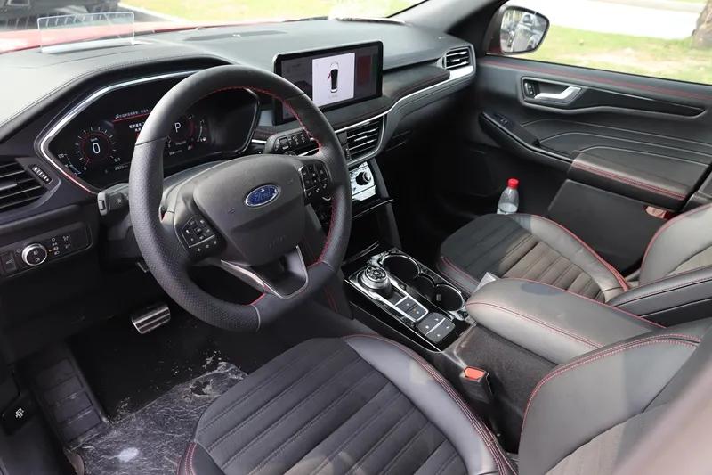 而内饰部分则可以看到中控台上的屏幕阵列占据了主要位置,或为三联屏结构,底下则是现在福特车型常用的旋钮换挡结构。