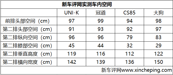 再值得一提是,UNI-K在空间表现上,完全是“照着冠道 (配置|询价)来打”的思路,我们都知道如此城市大五座SUV里面,冠道是为数不多也是做得最好的一个,而UNI-K在我们的空间测量里面,数据基本靠着冠道来。这就意味着,想要在自主品牌里面找出空间表现能PK长安UNI-K的对手,可不容易。
