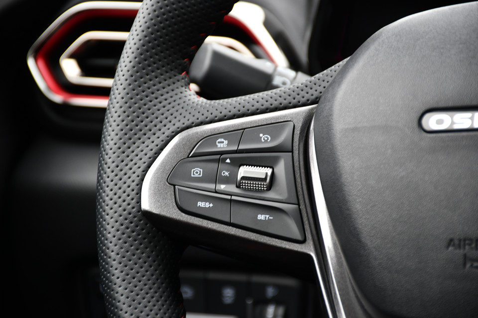 另外,红色座椅缝线、仿碳钎维饰板以及经过大面积软性材质包裹的中控台,整体给人的质感十分不错。