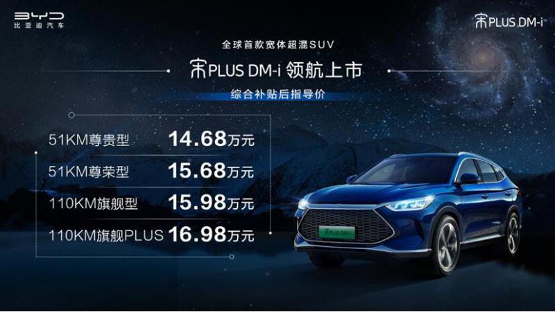 近日,比亚迪不慌不忙又发了一条朋友圈:超混SUV宋PLUS DM-i (配置|询价)正式上市,新车共推出两个版本四款车型,补贴后全国统一售价为14.68万元-16.98万元。虽是弹指一挥,但对整个汽车市场的冲击已然能够预见,尤其是10到20万元这个主流的消费区间。