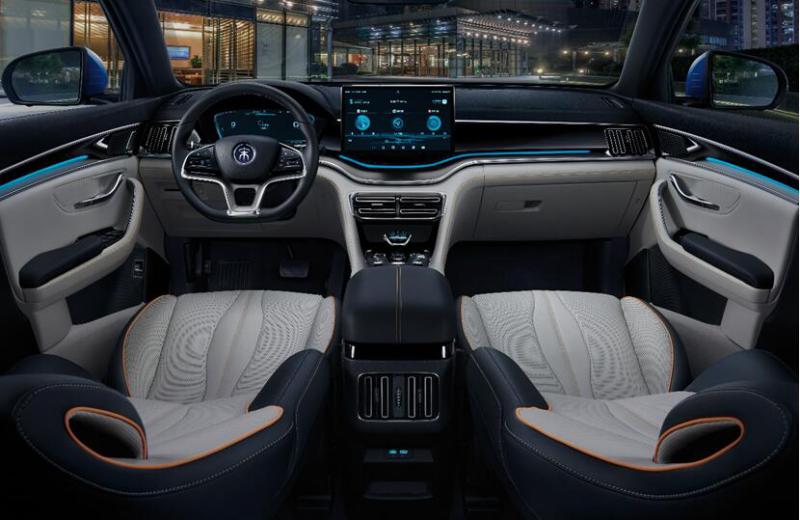 另外,在内饰和配置方面,宋PLUS DM-i在保留比亚迪一贯的科技感的同时,增加越级的配置。比如全系标配12.8 英寸8 核自适应旋转悬浮Pad、12.3 英寸液晶显示屏、手机NFC 车钥匙、Dirac 9 扬声器智能音乐座舱、OTA 远程升级、胎压数字显示、360°高清全息透明影像、前排及前风挡双层隔音隔热玻璃、前后排6安全气囊、主驾座椅电动调节、电动后背门、VTOL 220V电源输出、移动电站功能等,配置可谓全面越级。