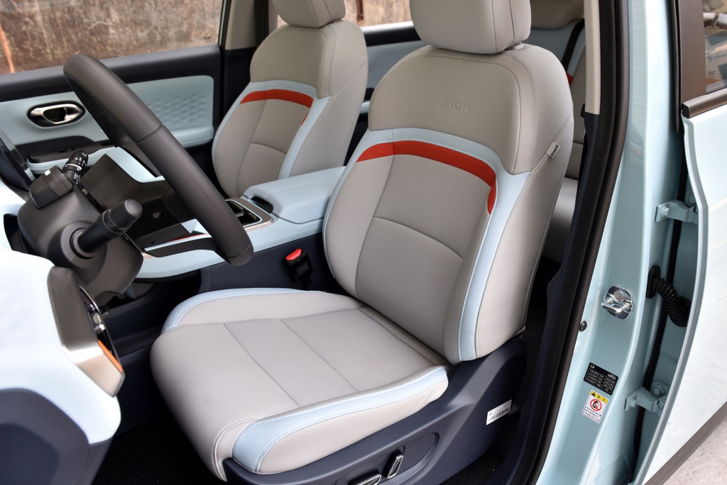 埃安AION Y的中控台造型很好的诠释了什么叫“直”。而“直来直去”的风格得益于两块液晶仪表盘的加持后也不显繁琐,反而是特有的配色让它显得十分活泼,与外观进行了很好的呼应,符合年轻化的定位。需要注意的是,埃安AION Y内饰所用的皮面颜色也接受定制。