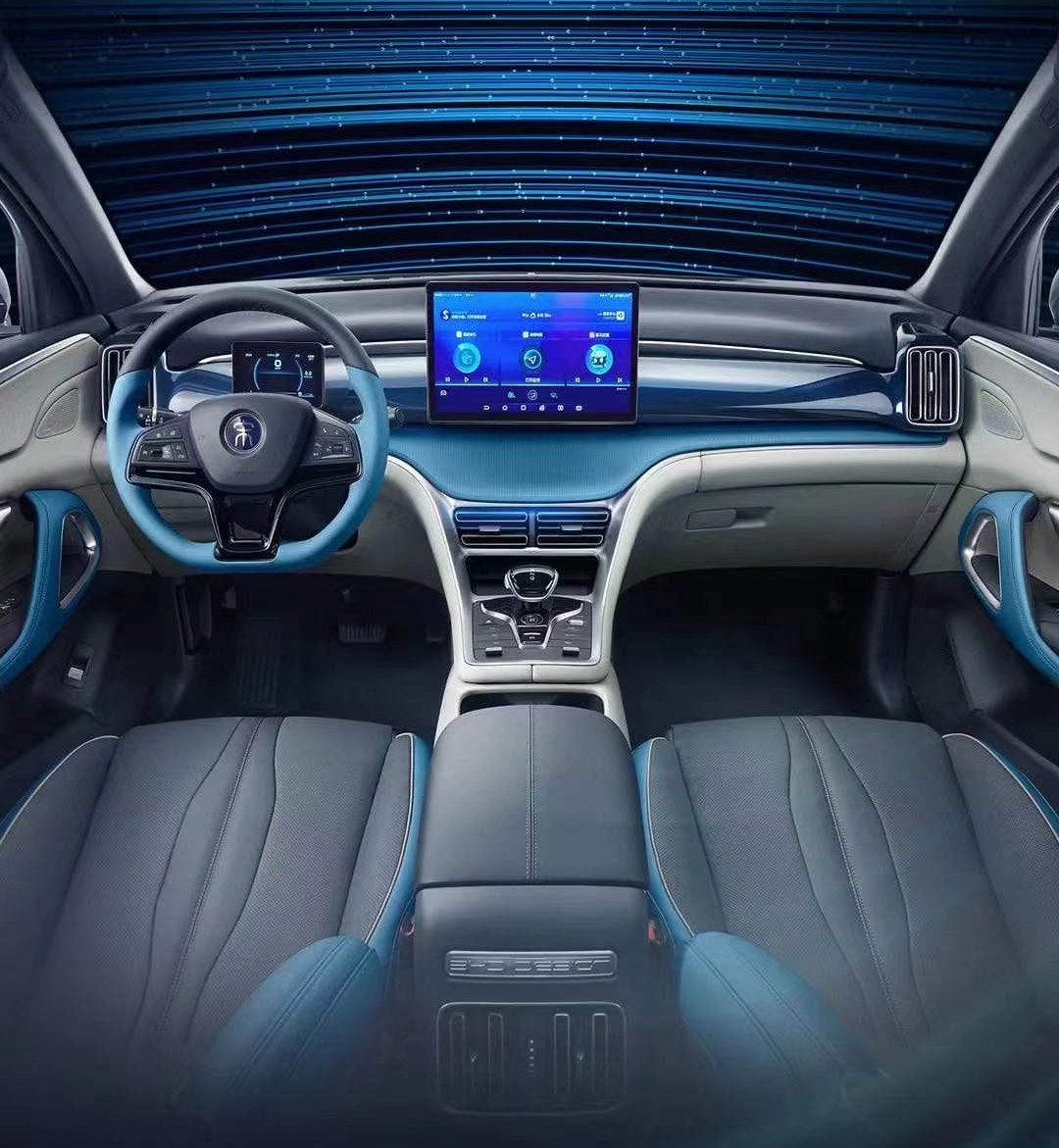 内饰部分,新款宋Pro的设计相较于老款车型,不仅在看得到的科技上有所升级,还在质感以及档次感上均有提升。新车采用了白蓝双拼配色,整体看上去具有十足的活力感,而在细节部分,多处的银色镀铬饰条和饰板的装饰,也为新车营造出了不错的精致度。值得一提的是,新车的全液晶仪表也是采用了家族中为数不错的小尺寸造型看上去别有一番特色,虽然尺寸较小,但整体显示程度的效果还是十分不错的。