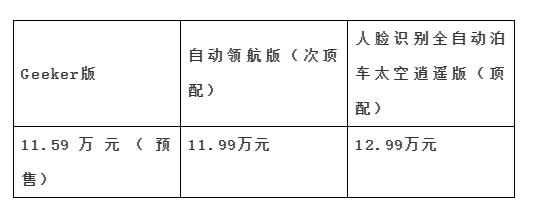 除了公布预售价,也推出了关于Geeker版的部分优惠政策:6年12次保养免费;Geeker金融礼:金融贴息7200元;Geeker免息礼:5万元定额贷、36期0利率;Geeker置换礼,置换补贴4000元。(具体细则还是以4S店内为准)