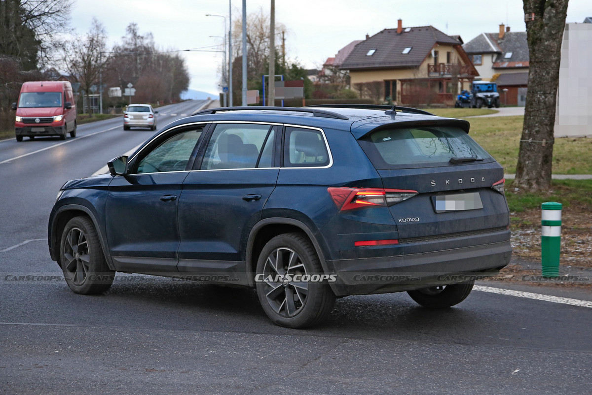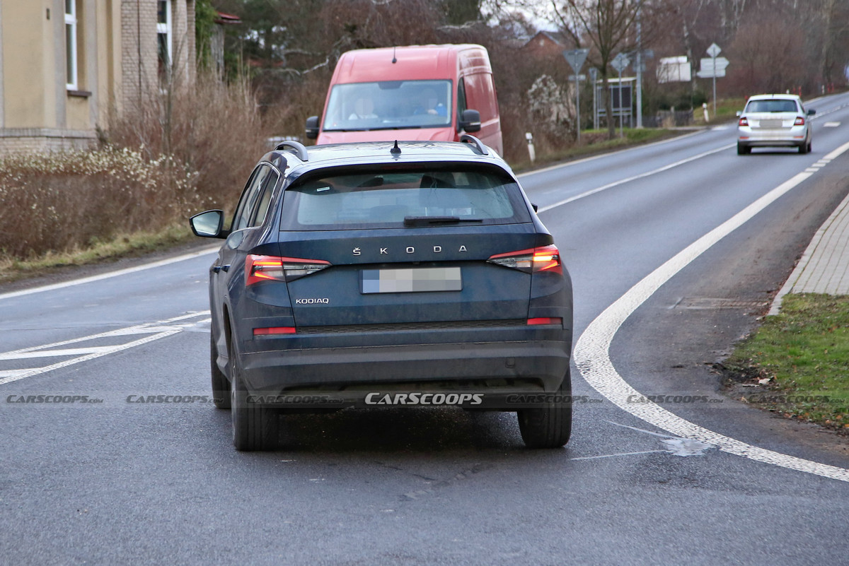 尾灯也比之前更加细长,之前的探照灯已经透露了车尾的其他更新,比如尾门中间的 "斯柯达 "字样代替了品牌惯用的标志。Kodiaq标识从右侧移到了左侧,车顶安装的扰流板似乎也略微变大,测试车的后保险杠几乎完全相同,但可能也会进行修改。