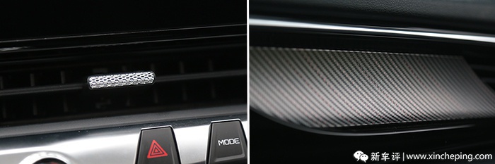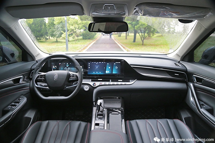 内饰就基本跟奔腾B70一样了,采用时下流行的双联屏设计,我觉得这个内饰相比于外观不够出彩。但细节方面还是看得出设计师是花了不少心思的,比如空调出风口的拨杆,用了复杂的工艺,让它看起来Bling-Bling的;仿碳纤维的装饰板,仔细看里面还点缀了一些红色的装饰线。