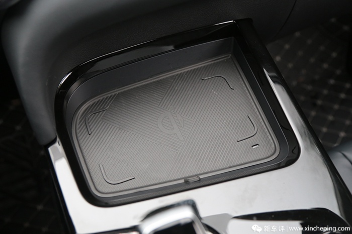 而且前排的储物空间也有些浪费,在挡杆前有一块很大的面积,居然只做了一个无线充电板,压根没有放其他零碎物品的空间,这样的设计在这个尺寸的车型上显得过于奢侈了些。
