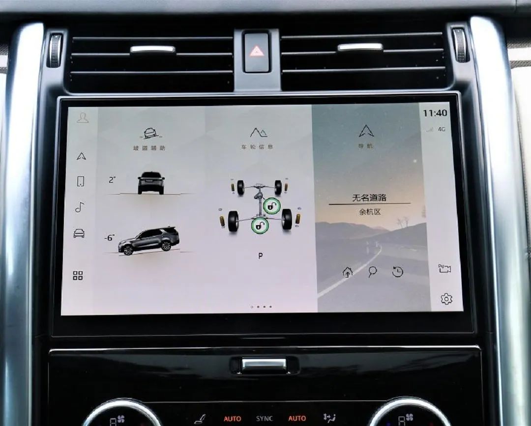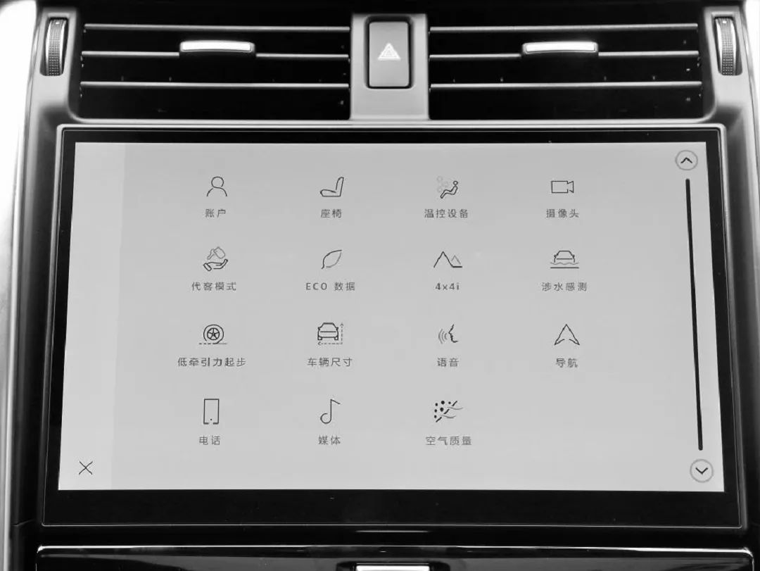 11.4英寸的中控屏看上去也更有科技感,车机内搭载了InControl OS 2.0信息娱乐系统,通过这块屏幕几乎可以完成所有操作,并且屏幕的流畅程度和清晰度也比较不错,在整个操作过程中没有一丝卡顿。除此之外,通过这块屏幕还可以看到车身角度以及车身倾斜度,在经过复杂路况时可以更加有效的掌握车身状态。