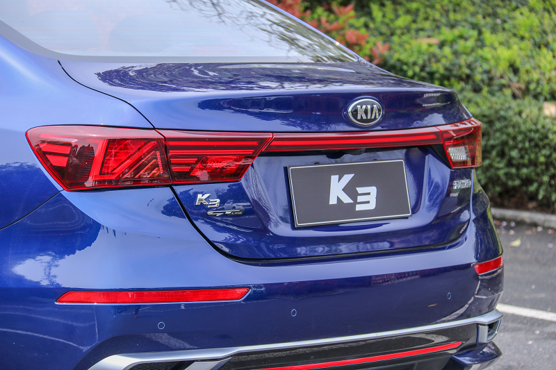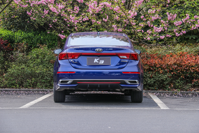 相比犀利的前脸,起亚K3尾部造型相对来说柔和了不少,更能被大众消费者所接受,突出了精致感和层次感。溜背式车顶一直延伸至尾部,并形成上翘的“鸭尾”造型,使车尾视觉效果更加立体、饱满。下方乍一看是采用了双边共两出排气布局,可细看后发现这两个排气是假的,不过这对假排气确实为尾部增添了不少运动属性,配合中间贯穿式镀铬饰条,让它看上去刚柔并重。