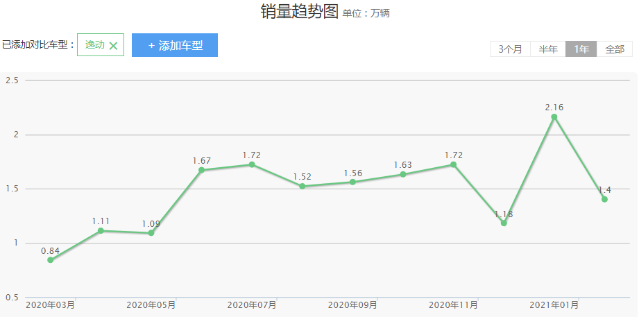 既然颜值高,价格方面也很亲民,自然销量也不会表现得太差,毕竟,它可是常年稳居紧凑型家轿销量前十以内,由此可见,我们国人对于它的喜爱程度。在最近一年的销量当中,基本稳定在月销量1万台左右,对于这样的销量表现,可谓是十分出众。