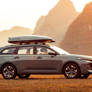 回顾一下新车的外观,新车造型与已经停产的新宝骏RC-5W保持着高度的相似,前脸采用窄长的点阵式前格栅,搭配两侧狭长的贯穿式头灯组,底部两侧进气口造型个性大气,并将雾灯布置在其中,整个车头展现的大气时尚。侧面来看,新车腰线平直贯穿,底部内凹的四边形长条设计更显车身层次感,并且配备造型个性的多幅式轮圈。此外,新车车顶安装了黑色的行李架,可固定自行车、固定帐篷、运输行李等。尺寸方面,新车长宽高分别为4685/1806/1485mm,轴距为2700mm。