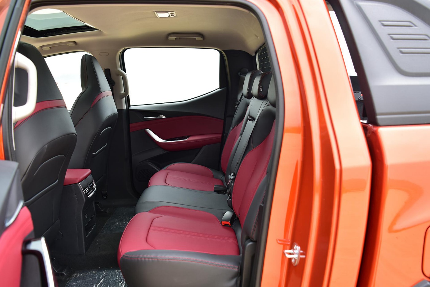 内饰整体造型更像一台SUV了,科技和豪华感营造的不错。采用了全新设计的黑、红内饰配色,中控台造型以驾驶员为中心,同时配备10.25英寸全液晶仪表与12英寸中控屏,虽然不是什么新鲜的设计,但这也将是皮卡车型中首次使用了双联屏设计。