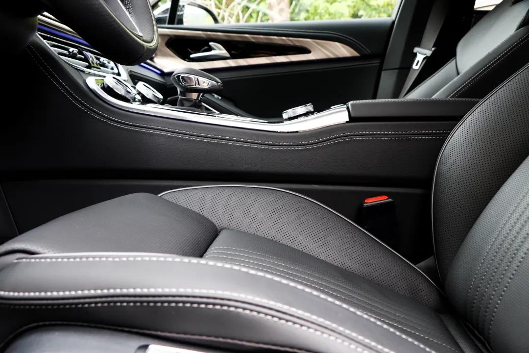 本次我也乘坐了配备空气悬架的3.0T车型,在空气悬架的作用下,整车的底盘高级感和隔绝感更强,甚至一定程度上达到了宝马5系 (配置|询价)所营造出的那种高级乘坐感。