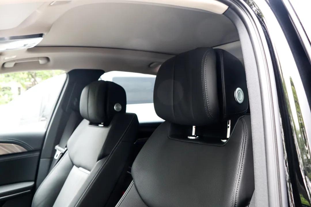 本次试驾的车型为2.0T智联旗享版,也就是次低配,但在前排就已经拥有了座椅通风/加热、航空头枕等舒适配置,可以提供更好的乘坐体验。