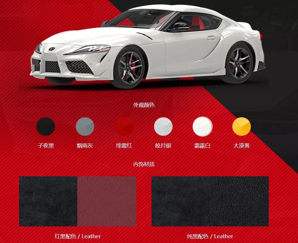 相信能看咱们号的客官,对Supra的参数早已倒背如流,我也不具体说了。值得一提的是,3.0T Supra才有后桥LSD,按需选择车型即可。倒是配置情况可以简单说说,详细的可以去丰田中国官网查询。进入中国大陆的Supra将有18、19吋轮圈可选,内饰有红黑双色或纯黑可选,科技化配置像抬头显示、全速域ACC、主动刹车辅助、车道偏离辅助等也是有的。