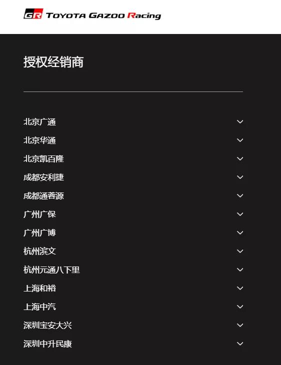 补充一点,Supra不是在任何一家丰田都能买到,只有丰田中国指定的经销商有销售权,具体参考下图。